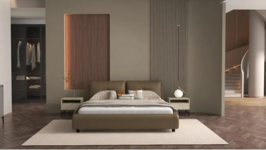 CBD家居·白金 | BS095軟床,卡其棕色穩(wěn)重而不莊嚴(yán),營(yíng)造一種舒適寧?kù)o的睡眠氛圍,獨(dú)立靠包寬厚飽滿,花紋拉點(diǎn)設(shè)計(jì)增加藝術(shù)美感,內(nèi)嵌床尾穩(wěn)固床墊,貼心守護(hù)好眠~