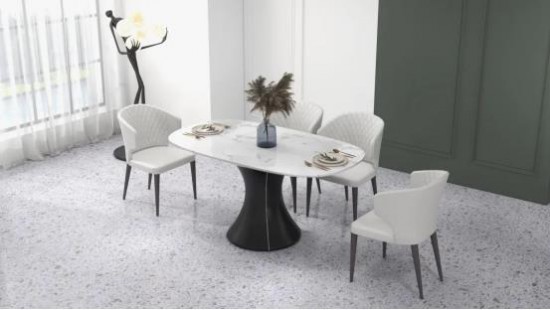 三餐茶飯,溫馨日常,用餐時(shí)光總是幸福值最高的時(shí)刻。CBD家居·雪豹 | X166餐桌,魚肚白巖板光澤溫潤(rùn),紋理自然靈動(dòng),小蠻腰型桌柱設(shè)計(jì),造型別致,還空間一份優(yōu)雅。