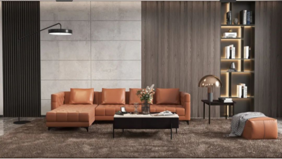 大膽將皮質(zhì)與布藝結(jié)合,CBD家居·黑金 | HZ039沙發(fā)獨(dú)有一番韻味,灰白色與橙色撞色搭配,經(jīng)典耐看,增強(qiáng)空間色彩層次。
