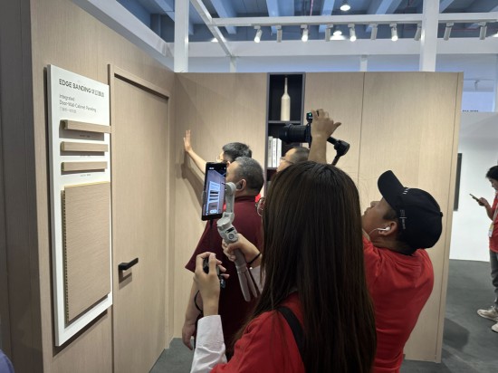 展會(huì)現(xiàn)場(chǎng),人流如織,華立股份的展位更是成為了眾多定制家居門店、家具廠、終端客戶群體以及行業(yè)媒體關(guān)注的焦點(diǎn)。大家紛紛駐足欣賞,對(duì)華立股份產(chǎn)品的品質(zhì)和設(shè)計(jì)感贊不絕口。在展覽會(huì)上,華立股份不僅帶來(lái)了令人眼前一亮的產(chǎn)品,更精心策劃了一場(chǎng)別開生面的線上打卡贏好禮活動(dòng),將線下體驗(yàn)與線上互動(dòng)完美融合。