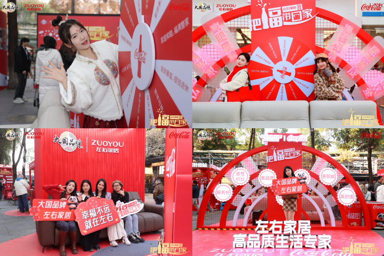 本次新春快閃活動正是基于雙方共同理念的合作成果,旨在傳遞新年幸福的熱鬧氛圍,讓消費者度過快樂的新春時光,這次攜手合作,左右家居以「把福帶回家」為主題,打造頗具新鮮感的新春活動,做到與各年齡段的用戶玩在一起,進一步強化品牌年輕化形象,有效地抓住年輕消費者,同時也為可口可樂增添中國家居的新年氛圍,雙方品牌希冀在新的一年里,能夠讓幸福品質生活走進千萬家,共同為用戶打造美好的生活體驗。