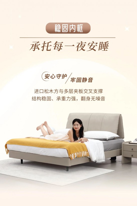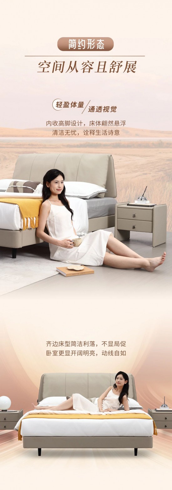 核心提示:空間從容且舒展,輕盈體量,通透視覺,內(nèi)收高腳設(shè)計(jì),床體翩然懸浮清潔無憂,詮釋生活詩意。