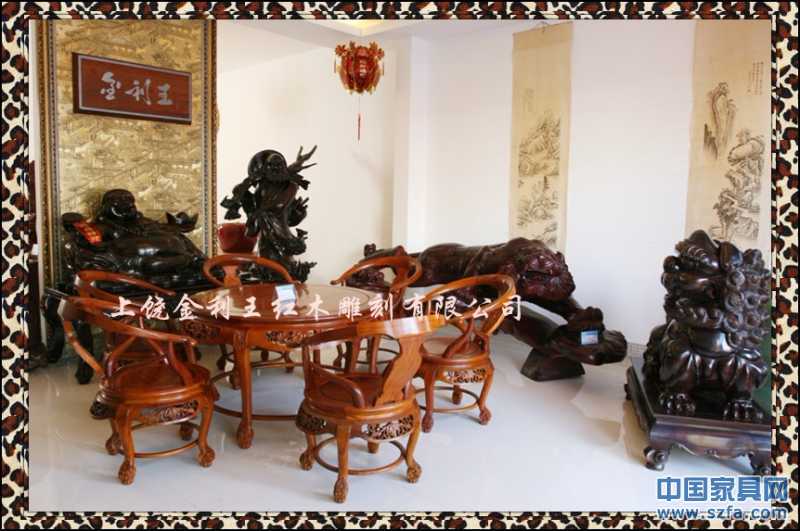 上饒市金利王紅木雕刻有限公司,座落于江西省上饒市經(jīng)濟(jì)開發(fā)區(qū)鳳凰園區(qū),是一家專門從事中高檔紅木家具生產(chǎn)的專業(yè)廠家。本公司視質(zhì)量與信譽(yù)為企業(yè)生存和發(fā)展的根本,潛心為客戶的利益而開發(fā)創(chuàng)新各種款式別致的優(yōu)質(zhì)產(chǎn)品。本公司產(chǎn)品選材于東南亞進(jìn)口的黃花梨、紫檀、酸枝、緬甸花梨等珍貴紅木,其特點(diǎn)色澤深沉、質(zhì)地精密、紋理細(xì)膩。公司擁有精湛的技術(shù),產(chǎn)品手工制作,名師打理,設(shè)計精美,制作精巧,榫卯牢固,舒適耐用。既傳承傳統(tǒng)的雕刻技術(shù),研發(fā)古典藝術(shù)家具,又融入了新的潮流構(gòu)思,其人、物、花、鳥栩栩如生,龍、鳳、獅、虎神采飛揚(yáng),富含東方神韻,各類產(chǎn)品深受廣大消費(fèi)者和藝術(shù)愛好者的親睞。
