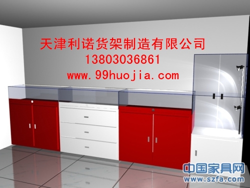 主要是由環(huán)保型木板材料,用特制的防火板加上各種裝飾材料及玻璃罩拼制而成。對一些較貴重的首飾、制衣、精密儀器、手機以及各種計算機類商品的所用貨架。沒有固定標準,可根據(jù)商品需求及地面 位置,可做標準形狀或異型展柜。
