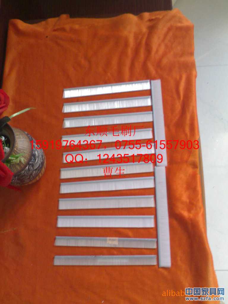 鐵皮條刷,裝在活動(dòng)門窗、旋轉(zhuǎn)門、平滑門、自動(dòng)門、電梯上的密封條刷用來阻隔灰塵,防止灰塵進(jìn)入內(nèi)部。公交車、地鐵、火車、電梯等都裝有相應(yīng)的條刷配套產(chǎn)品。不銹鋼帶條刷、馬毛條刷、不銹鋼絲條刷、波紋尼龍絲條刷、磚機(jī)條刷、尼龍絲條刷等。條刷一般用鐵帶(或不銹鋼帶)和鐵絲(或不銹鋼絲)進(jìn)行固定刷毛,廣泛應(yīng)用于各類自動(dòng)門、旋轉(zhuǎn)門、平滑門、鋼結(jié)構(gòu)門,以及機(jī)器設(shè)備的清掃、清潔、防塵、密封等。鐵帶厚度規(guī)格為:3、4、5、6、7、8、10mm等,不銹鋼帶厚度規(guī)格為:3、4、5、6、7、8mm,毛長(zhǎng)及條刷長(zhǎng)度按要求加工,刷條可進(jìn)行打彎等特殊處理。