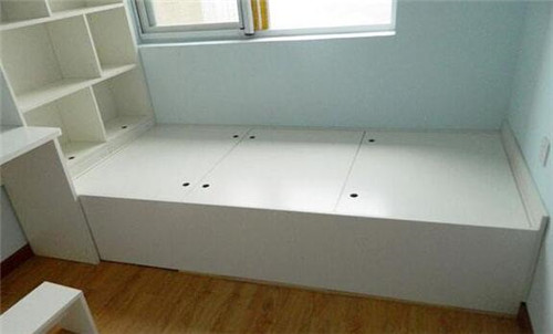 榻榻米床這個通常配合地臺使用,要知道地臺它有著一定的儲物功能。比如說像普通地臺一般是設計在15cm-20cm,但榻榻米床的地臺除了儲物功能那么還可以安防電動升降桌,所以這種高度就是在設計在35cm-40cm之間,否則就很難達到儲物功能。