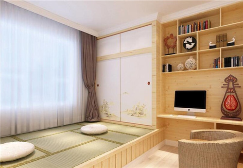 現代的榻榻米在設計方面都是比較多樣化,比如說有時會在上方設計書柜、衣柜或者書桌等,這樣就讓這個空間實現書房、臥室、客廳等多種功能空間的變換。