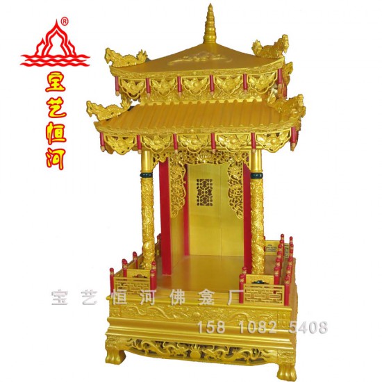 金色雙層屋檐神轎式佛龕方形屋頂仿古建神龕