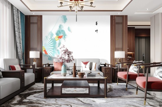 此系新中式客廳背景墻設計效果圖,包括:沙發(fā)背景墻和電視背景墻,更多裝修效果圖,請關注企業(yè)官網:www.ykshu.cn
