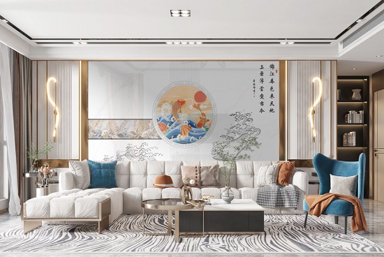 新中式客廳背景墻設(shè)計(jì)效果圖(中)