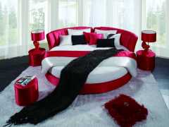 (6) 順德家私 軟包床頭 現(xiàn)代名床 紅色婚床|