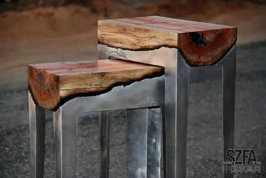 以色列天才藝術(shù)設(shè)計(jì)師Hilla Shamia創(chuàng)造出來(lái)的桌椅,每一張都是獨(dú)一無(wú)二的。通過(guò)獨(dú)特的加工技術(shù),將“高冷”的金屬和天然的原木結(jié)合,打造出讓人挪不開(kāi)視線(xiàn)的漂亮桌椅。