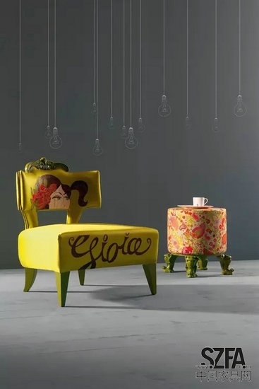 這個(gè)新的系列家具是室內(nèi)設(shè)計(jì)、戲劇和視覺情緒的產(chǎn)物,表現(xiàn)了各種象征現(xiàn)代生活的品位和文化。不同尋常的形狀,顏色的鮮明對比,材料的大膽組合被高超的手工藝技術(shù)結(jié)合在一起,創(chuàng)造出一種千變?nèi)f化的風(fēng)格和氛圍,用創(chuàng)造力和諷刺意味重新塑造空間,不僅提供了重新審視過去的家具,還有當(dāng)代設(shè)計(jì)作品。給予了無限的幻想。