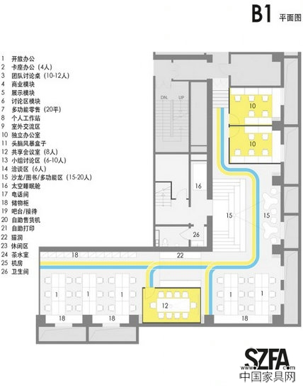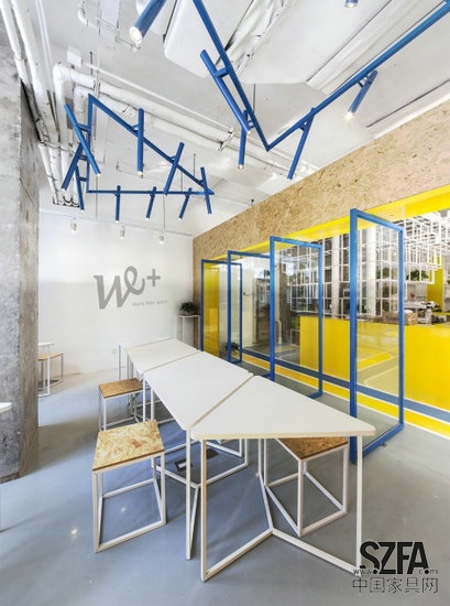 北京遠(yuǎn)洋新干線We+聯(lián)合辦公空間建筑面積約800平方米,分為首層、二層和地下層。建筑師在項(xiàng)目初期,采用研究導(dǎo)入設(shè)計(jì)的方式,通過大量調(diào)研和案例分析,從該聯(lián)合辦公空間的類型、模式需求方面與業(yè)主進(jìn)行探討,從而得出了一個(gè)靈活多變的共享空間模式。
