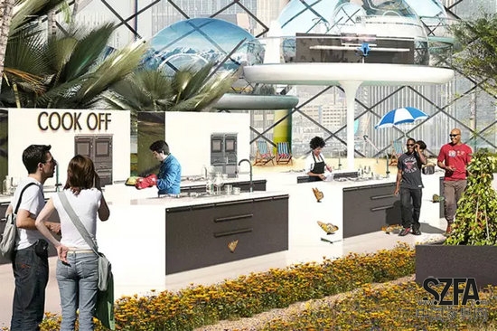 在這個(gè)未來的辦公空間中也包括一個(gè)健康中心和健身房,同時(shí)還擁有一個(gè)能在工作時(shí)間預(yù)約的診所。花園里允許員工自己進(jìn)行種植來獲得新鮮的蔬菜作為午餐,員工甚至能擁有一個(gè)“烘焙比賽”模式的共享廚房,能讓他們一起做飯。
