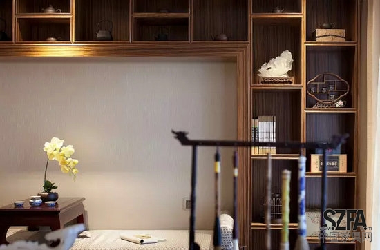 臥室則以清雅做基調(diào),運用了花的顏色與鳥的圖案。這是古人喜愛的祥和圖案,是一種婉轉(zhuǎn)的向往,設(shè)計師借用美好的愿景添置在臥室內(nèi),令東方文化無處存在。