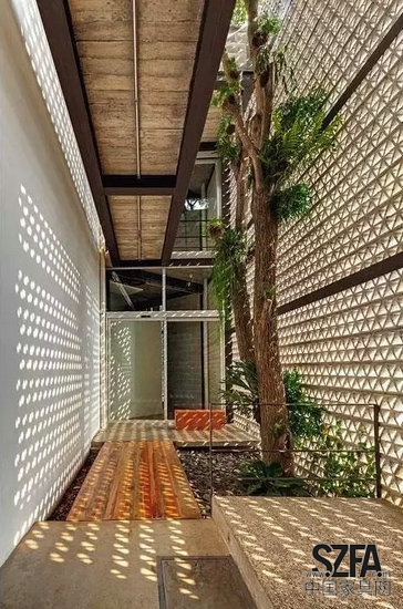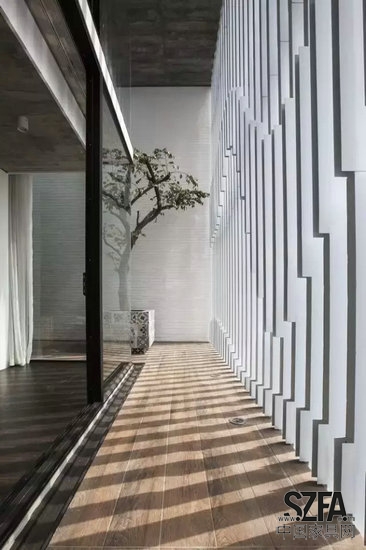 走廊中的樹(shù)木掩映在光影之下,讓你經(jīng)過(guò)時(shí)不必匆忙,看看樹(shù)木茁壯,賞賞自然之景