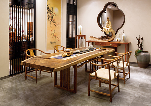 家具色彩主要以經(jīng)典的黑檀色、花梨色為主,色彩潤(rùn)澤而清透,沉穩(wěn)而雅致,局部金屬色的點(diǎn)綴,讓色彩更加靈動(dòng)與時(shí)尚,蘊(yùn)育著古典與現(xiàn)代的交融。細(xì)薄的全封閉涂裝工藝,將紅木天然細(xì)膩而結(jié)實(shí)的觸感表達(dá)的淋漓盡致。柔和的光澤、清晰的透明性則將黑檀色、花梨色的沉穩(wěn)、典雅烘托得恰倒好處。