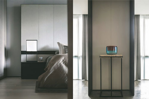 所有家具選用灰色為主調(diào),局部用藍色的飾品做搭配。搭配豐富質(zhì)感的物件,在細節(jié)上也使空間更有層次感。