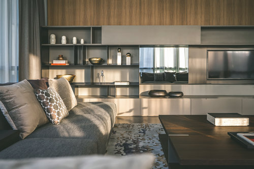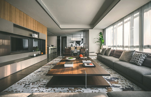 前海中心悅璽公寓A戶型的設(shè)計主題是“URBAN NOBLE‐都市新貴”,總面積約為122㎡. 整體的家具選型以簡約風家居為主,注重在細節(jié)上打磨利用空間。
