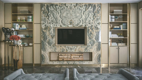 設(shè)計(jì)以玉石之王翡翠的色彩,應(yīng)用于灰色的主調(diào)空間,以豐富的家居配飾元素、鮮明的色彩層次及質(zhì)感的材料運(yùn)用,呈現(xiàn)了浪漫、靈動的空間之美,讓這個五層的別墅呈現(xiàn)了絕美風(fēng)華。