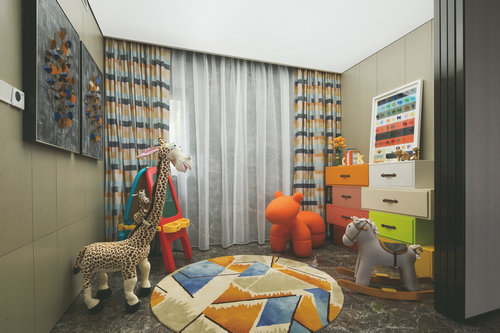 多功能房間設(shè)計(jì)為兒童玩樂(lè)區(qū)。色調(diào)溫馨。儲(chǔ)物柜的設(shè)計(jì)很簡(jiǎn)單有型,給人一種時(shí)尚感,同時(shí)也很有實(shí)用性。鮮艷的色彩,各種小動(dòng)物,軟軟的地毯。讓小主人無(wú)憂(yōu)無(wú)慮的享受玩耍時(shí)光。主衛(wèi)整體墻地面灰影大理石設(shè)計(jì),空間簡(jiǎn)潔大氣。綠色植物是生活的一部分,為家?guī)?lái)足夠的清新與自然。