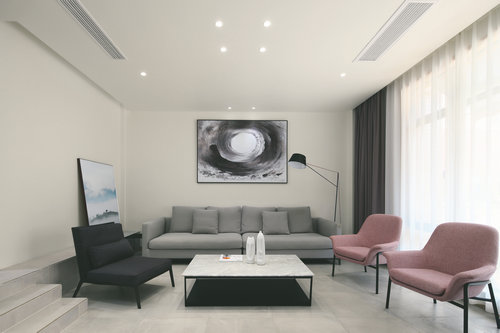 本案以淡雅色調(diào)為主,以爵士白大理石打造的白色,看似沒有具體的形象,但可以從整體上感受它與有形的圖像之間密不可分的關(guān)系,從而營造出濃濃的含蓄美感。使人在了解了設(shè)計所傳達的信息之外更能夠獲得情感上的共鳴,藝術(shù)上的陶冶。