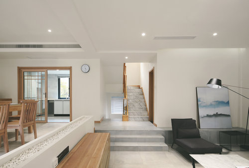 細節(jié)之處,木質(zhì)物件以其最自然的紋理,給人無限親切感,不論是簡約風(fēng)格的空間還是混搭空間,都能用木質(zhì)家具給空間增添飽滿感和溫馨厚重感。長方形的木質(zhì)餐桌,展示出濃郁的日式恬淡。木質(zhì)的餐桌系列與樓梯扶手、門框的木質(zhì)運用相互點綴,貼近自然。淡淡的木色,搭配純凈的白色,營造出溫馨的居家環(huán)境,同時帶來一種和諧、寧靜素雅的美。